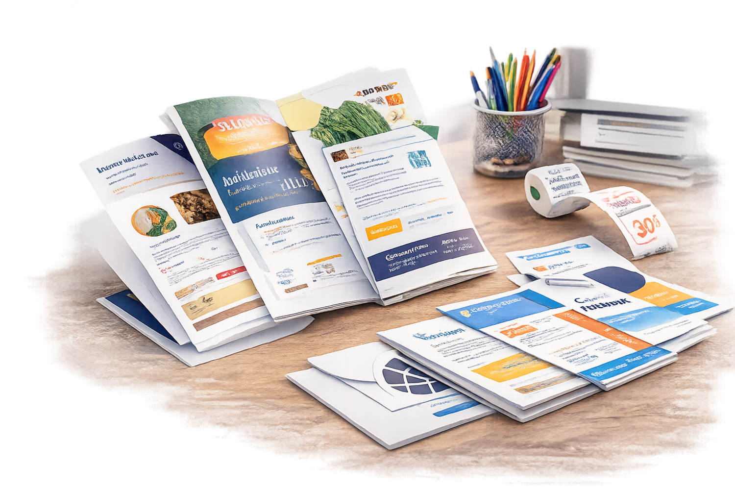 Pliante pentru promovare directă, distribuție și campanii locale.